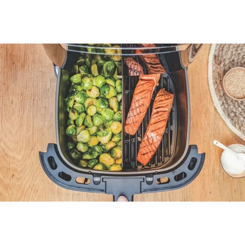سرخ کن تفال دارای گنجایش 5/6 لیتر است. این سرخکن زیرمجموعه نسل جدید سرخکنهای بدون روغن به شمار میرود که میتواند بدون وجود قطرهای روغن یا میزان کمی از آن (1 قاشق غذاخوری) مواد غذایی را به خوبی سرخ کند، در حالیکه مواد غذایی نسوزد یا بوی بد به خود نگیرد. این محصول حرفهای، سبب کاهش زمان آشپزی برای مصرفکنندگان میشود و نیازهای افراد را حین آشپزی برآورده میکند. سرخ کن تفال از قابلیت تنظیم حرارت برخوردار بوده و قدرت 1830 وات دارد. با این سرخکن امکان سرخ دو مدل مواد غذایی به صورت همزمان را خواهید داشت. در واقع باید گفت سرخکردن هر نوع مواد پروتئینی بدون هیچگونه روغنی با این محصول امکانپذیر است. تمامی قطعات این محصول قابل شستشو میباشد.
